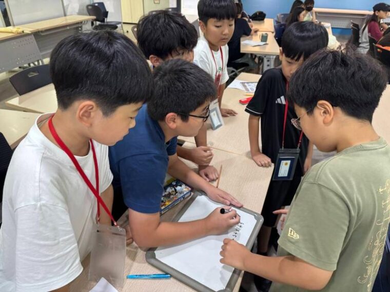 大人の私たちはなかなか解けませんでしたが、子どもたちはグループで力を合わせて答えを導き出していました!子どもの脳の柔軟性は本当にすごいですね!(^^)!