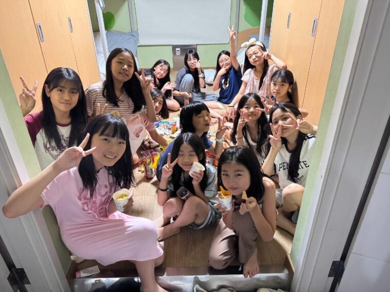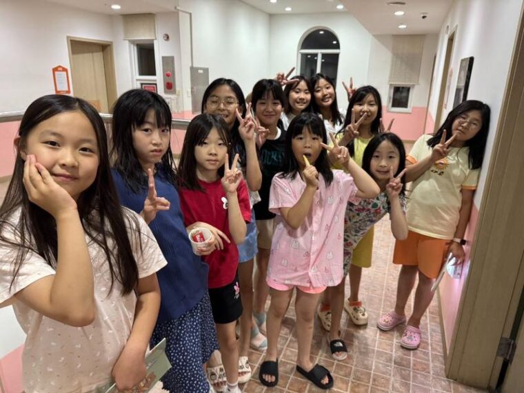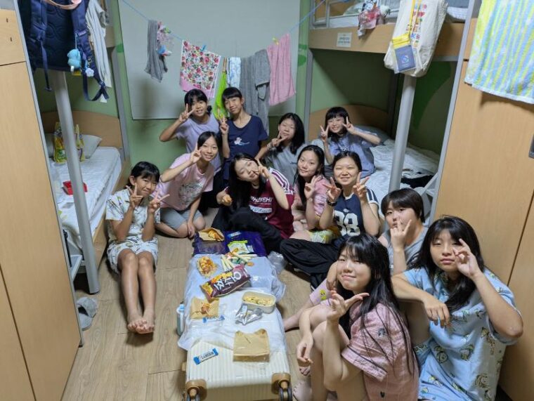 3日間英語漬けでみんな結構お疲れの様子なので、今日の夜はHotelタイムで英語村からの差し入れもあって、女子のお部屋ではお菓子パーティーが繰り広げられていました(*^-^*)