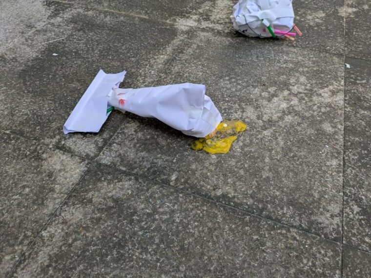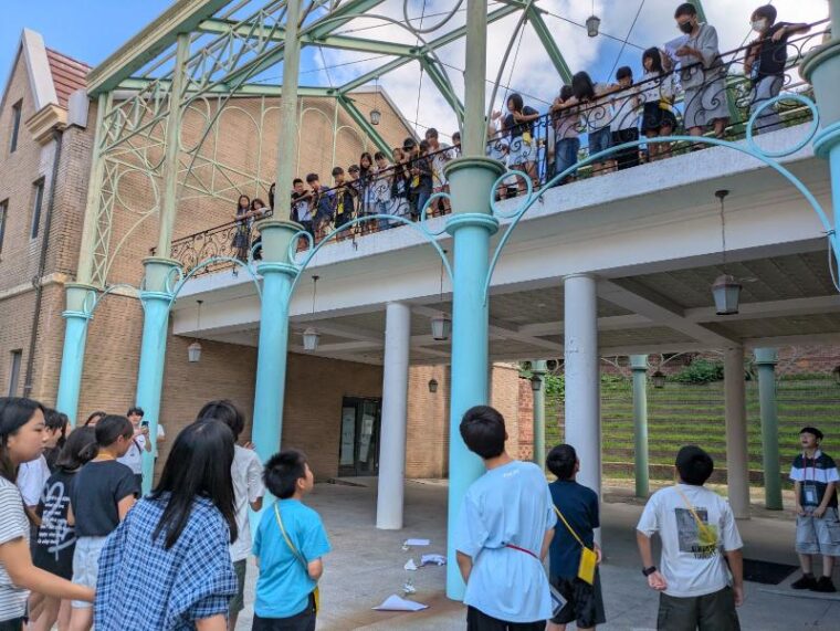 作ったエッグパラーシュートを実際に上から落としてみて、割れないかどうか確認します。