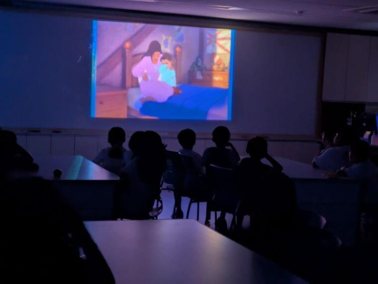 夕食後はナイトアクティビティでMovie nightです☆今日はディズニー映画のトレジャー・プラネットです。