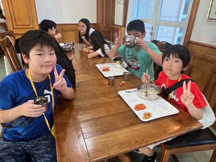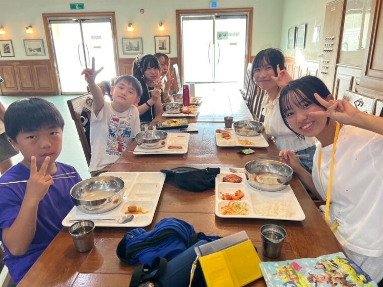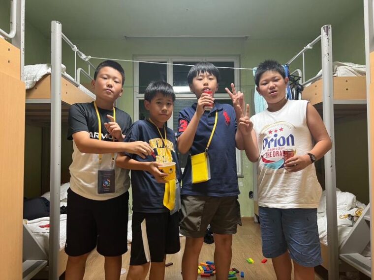 ナイトアクティビティの後は寮に戻って、英語村からチキンとジュースを貰い、お友達との最後の夜です。