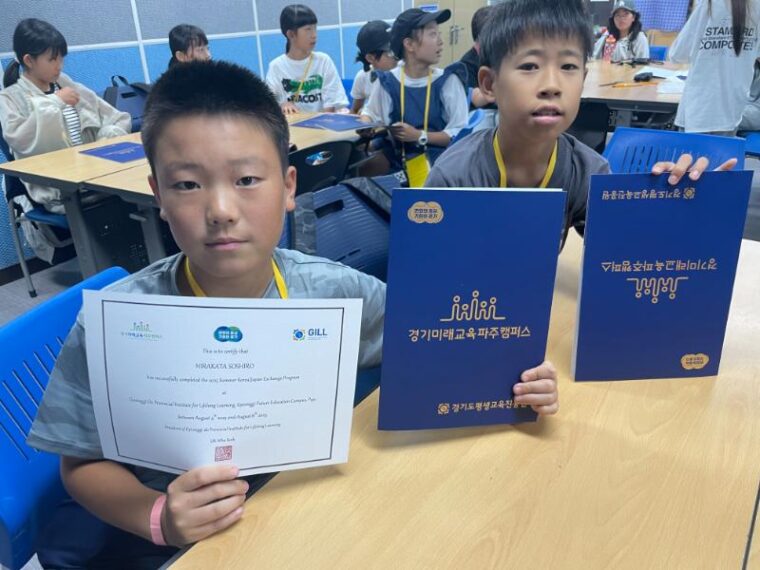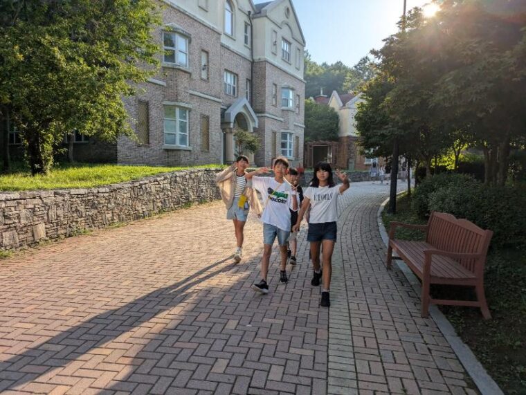 現地では、英語の授業やアクティビティを通して、韓国人のお友達とも交流する機会がたくさんありました。言葉や文化の違いを超えて笑い、助け合い、時には戸惑いながら過ごす中で、子どもたちは自分の世界をぐっと広げていったことでしょう。