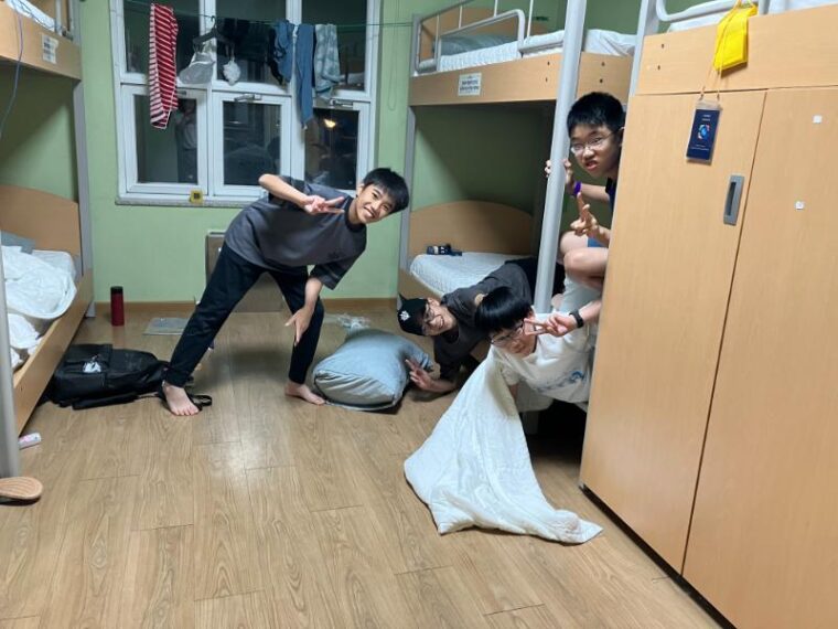 見回りに行くと移動の疲れなどなさそうです。交代でシャワーを浴びたり、さっそく韓国人と交流を楽しんでいたり、とても元気いっぱいでした。