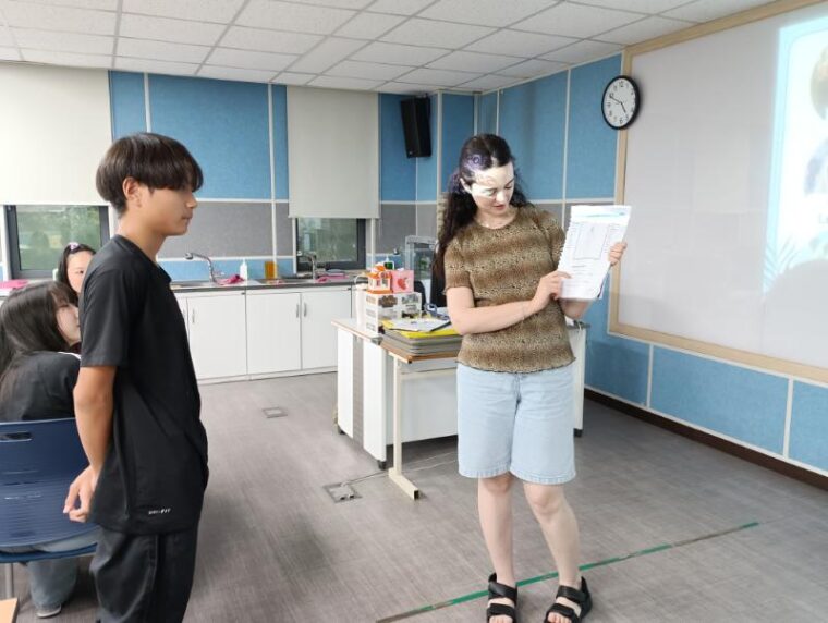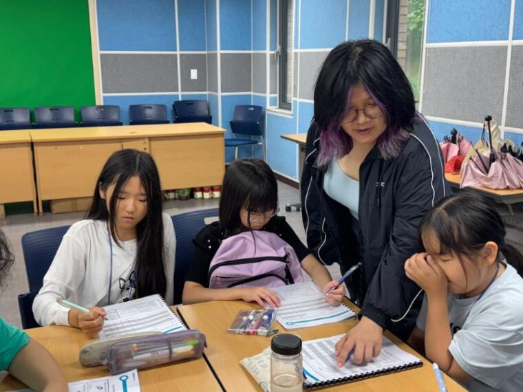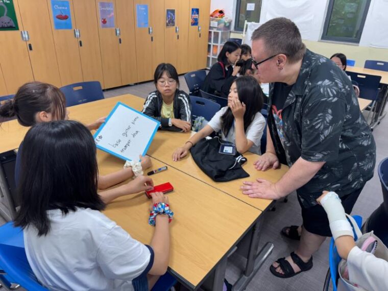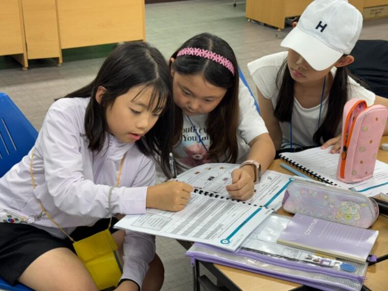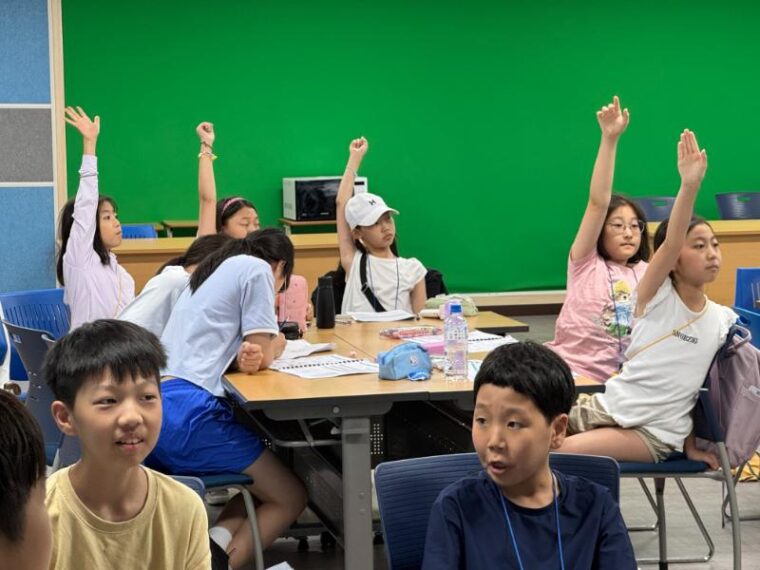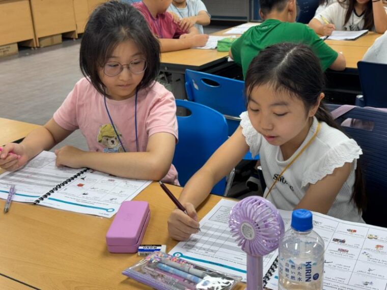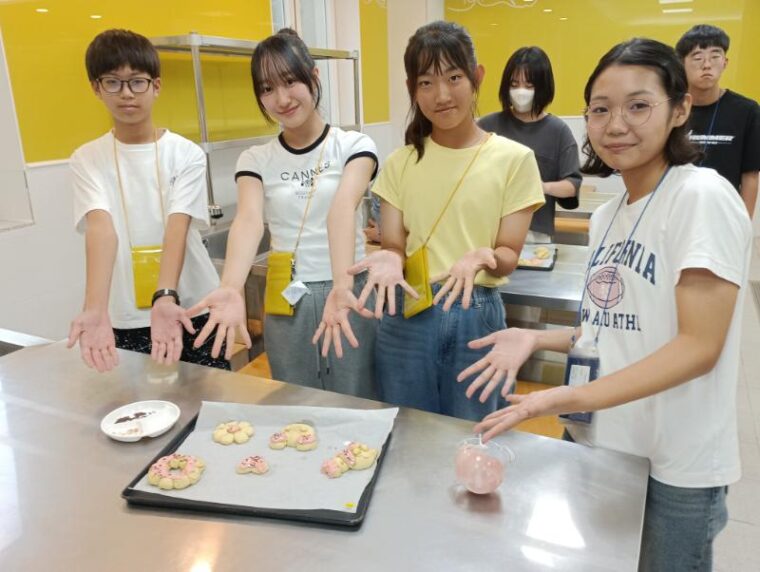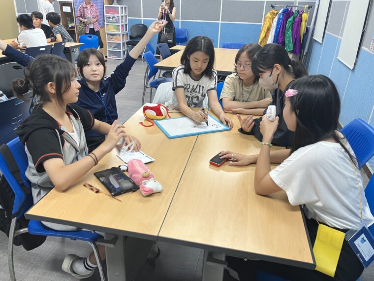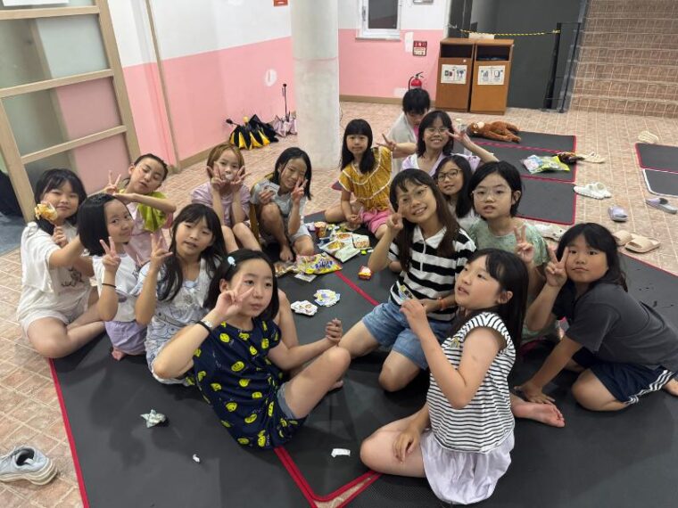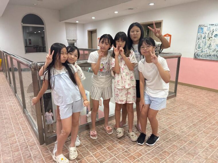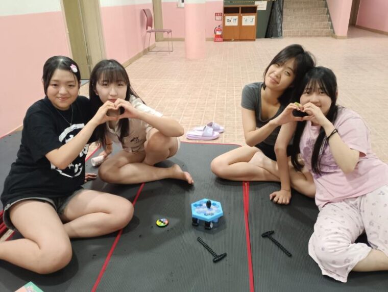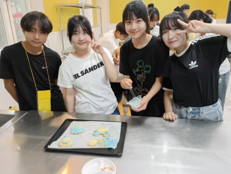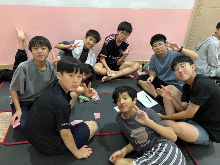そして昼食です。午後からは5コマ授業が盛り込まれているのでしっかり食べて備えましょう。もうすっかり授業外で韓国人のお友達と一緒にいる風景は珍しくなくなりました。韓国語を教えてもらっている子どもも多いです。オリエンテーションの時にお話させてもらった異文化理解が進んでいて、私たち引率者もとても誇らしい気持ちになりました。