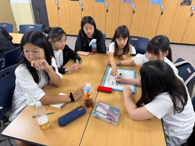 生活習慣を題材にした授業で、子どもたちに良い習慣と悪い習慣についてのQ&Aを行い、クラスによってアクティビティが違いますが、クラスメイトまたはグループ内にて生活習慣について情報共有をし、生活習慣についてのルール作りをします。良い習慣を中心に早起きをする、宿題をするなどグループで生活習慣についてのルール作りをしていました。